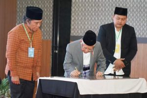 Wapres Ma’ruf Amin saat menanda tangani Prasasti Kresek Kampung Santri di Aula Syekh Astari Kecamatan Kresek Tangerang Banten Minggu (14/7/24)...